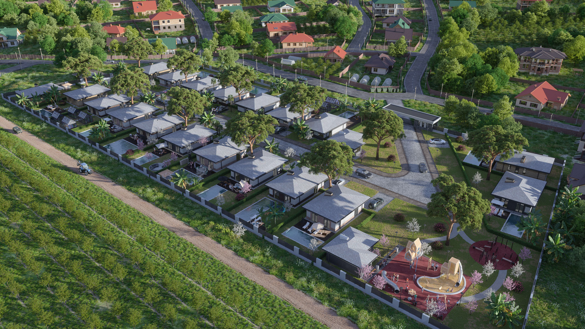 Visualization of a small cottage village
